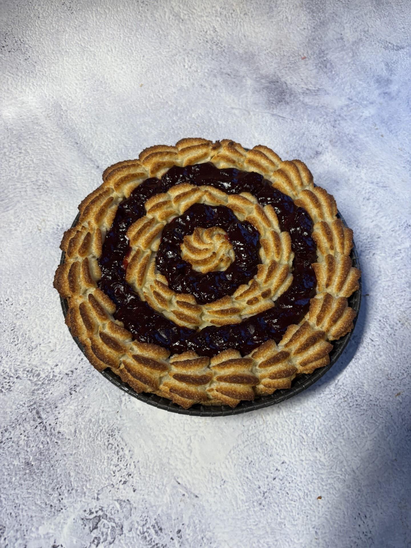 Vaniljekage med kransekage og solbær kompot