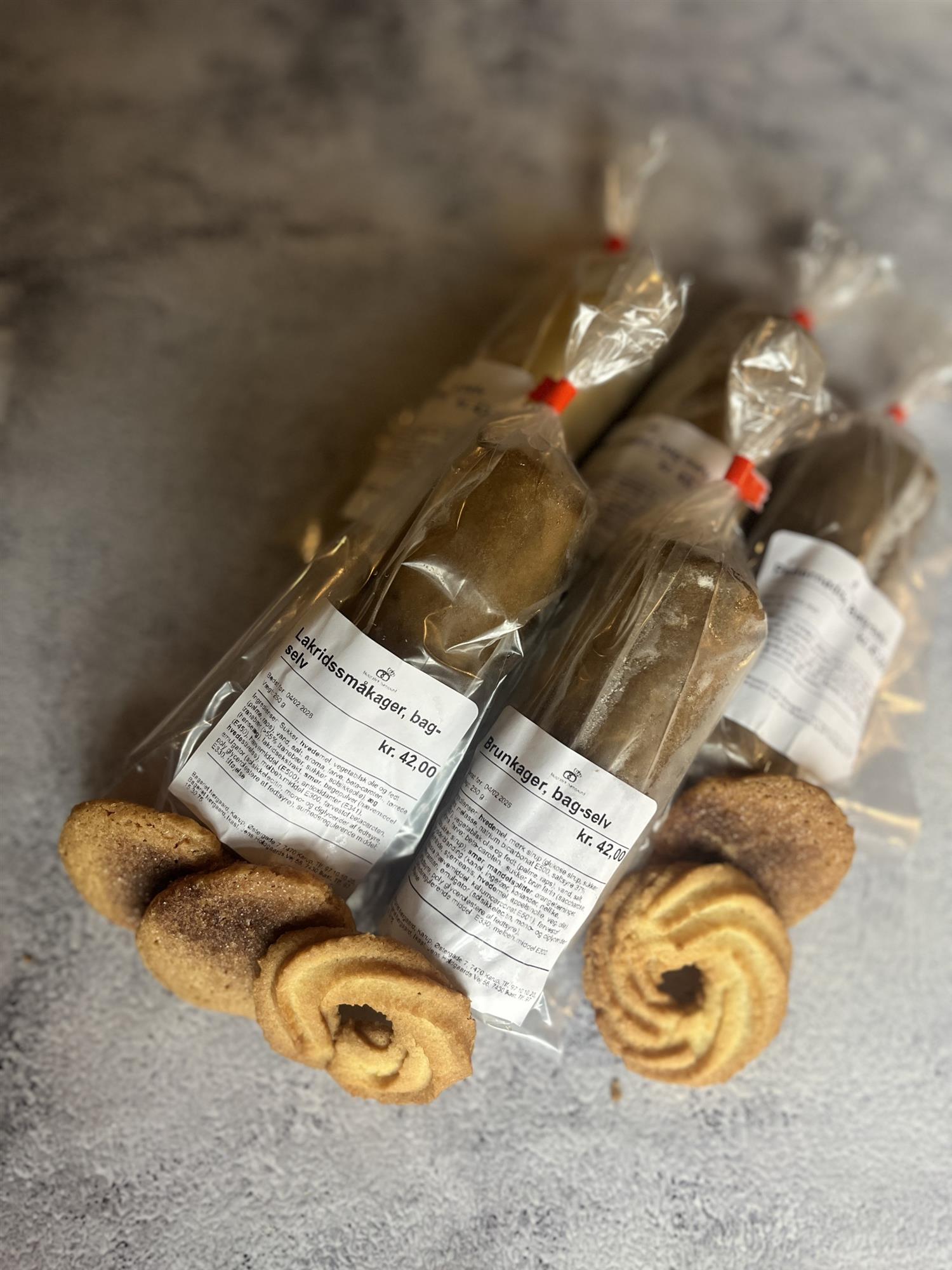 Gør julebagningen nem, hyggelig og helt uimodståelig med vores “Bag Selv” småkagedej. Du får den færdigblandede dej – frisklavet og klar til ovnen – så du kun skal forme, skære og bage. Vælg mellem: